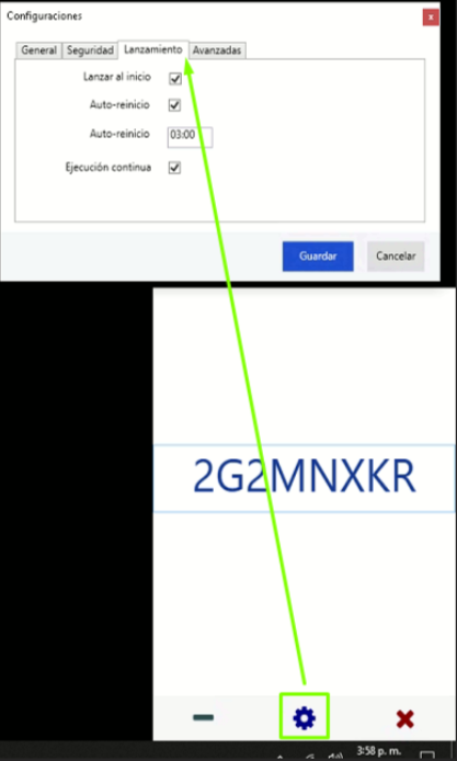 Una vez se ejecute AKF y te muestre el código de registro, debes hacer clic en la tuerca o engranaje.