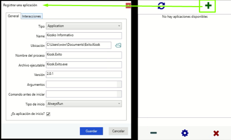Ejecutar el acceso directo de Arkbox.Kiosk.Framework.exe