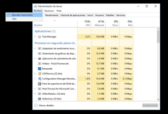 Luego, debes hacer clic en la pestaña Archivo > y seleccionar Ejecutar nueva tarea