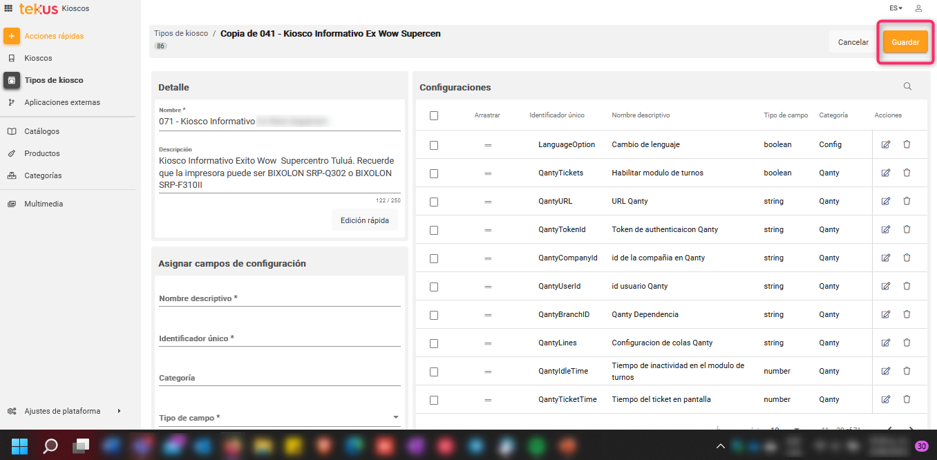 Ahora que estás de nuevo en las configuraciones del tipo de kiosco debes hacer clic en Guardar.