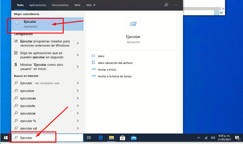 En la lupa que hay en la barra de tareas debes escribir Ejecutar y presionar Enter.