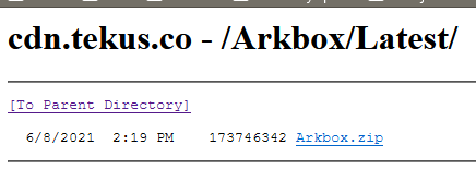 De nuevo debes abrir el navegador del kiosco pero esta vez para ingresar el enlace https://cdn.tekus.co/Arkbox/Latest/ y seleccionar Arkbox.zip para descargar el paquete de instalación.