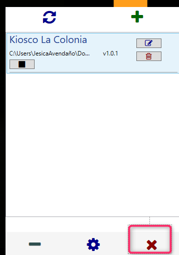Nombre del proceso: debes escribir kioskLaColonia (Sin espacios de más ni al inicio ni al final)