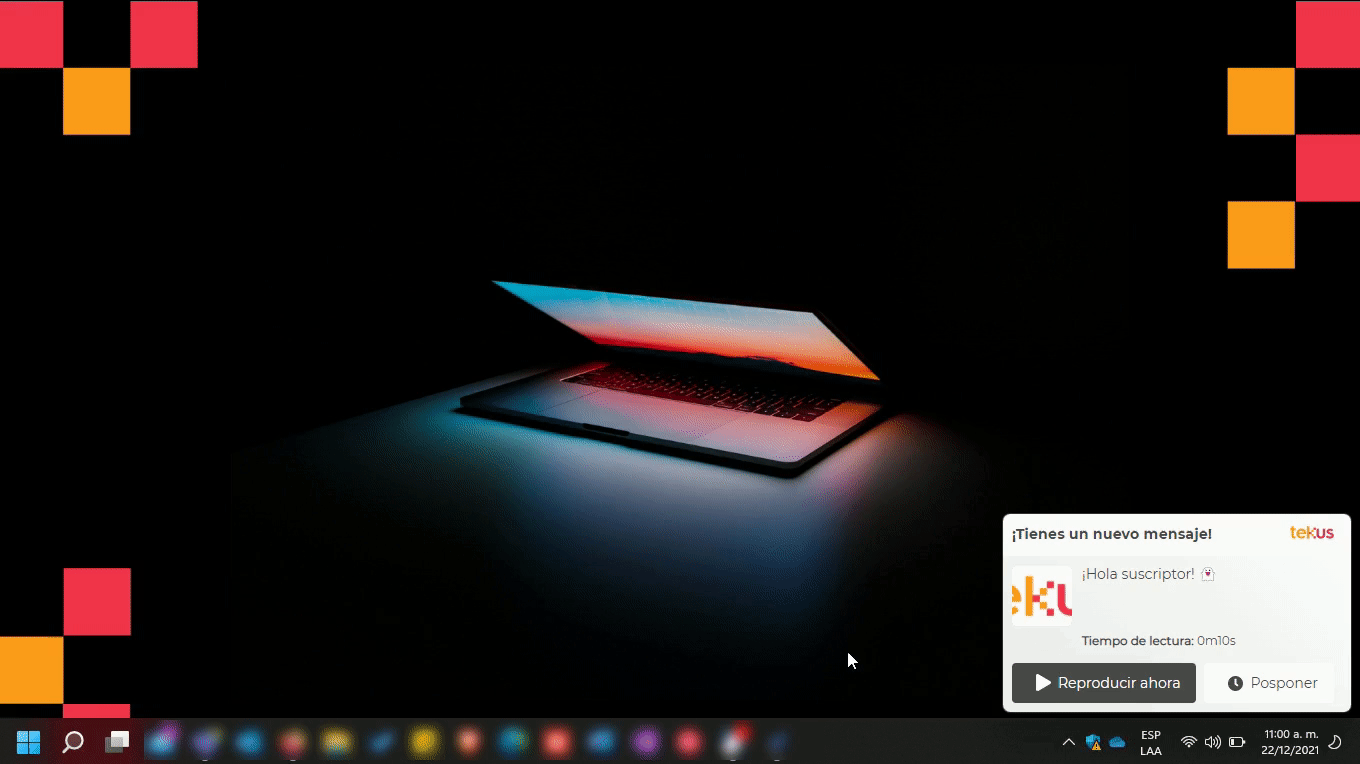 El mensaje se desplegará en la parte inferior derecha del computador o en la pantalla del celular del suscriptor y le preguntará si desea reproducirlo ahora o posponerlo unos minutos.