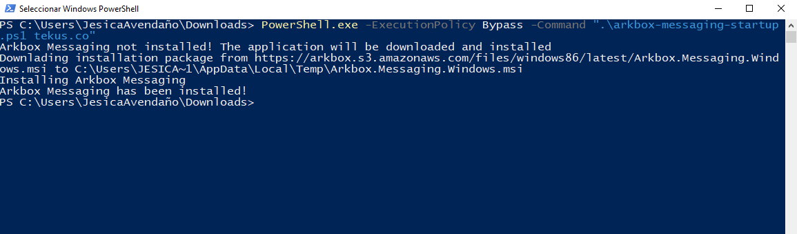 El script de instalación lo puedes descargar en el siguiente Enlace: https://arkbox.s3.amazonaws.com/files/desktop/latest/arkbox-messaging-startup.ps1