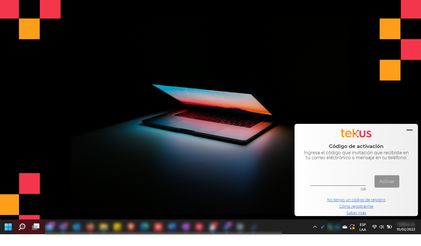 Una vez instalada la aplicación se intentará realizar el registro en nuestra plataforma utilizando el patrón NOMBRE_USUARIO + @ + NOMBRE_DOMINIO. Para mayor información consulte ¿Cómo activar la aplicación de escritorio de Tekus Mensajería?