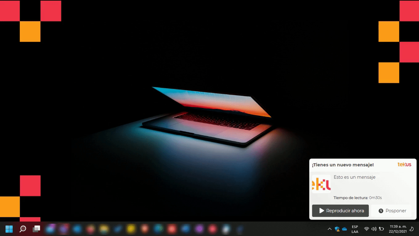Ahora bien, a las personas a las que Alejandra deseaba enviar su mensaje, que fueron definidas como Audiencia en la creación del mismo, se les mostrará en su pantalla a través de la aplicación de Tekus Mensajería (previamente instalada en su computador o celular)