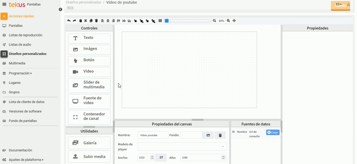 Si tienes dispositivos Android con la versión 3.28 o superior de nuestro reproductor de Señalización Digital (Tekus Player), ahora vas a poder transmitir videos de Youtube o Youtube Live desde la plataforma web de tekus, por medio de diseños personalizados.