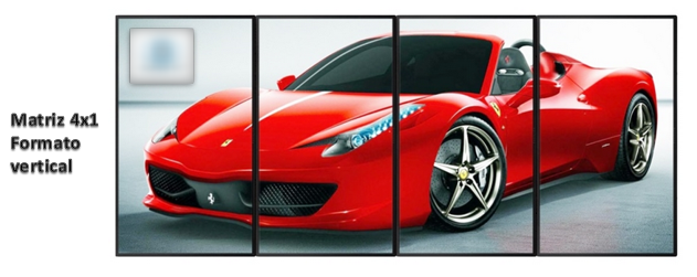 El formato físico se refiere a una configuración 4x1V, es decir, una matriz de 4 monitores dispuestos en fila, formando una sola columna en orientación vertical.