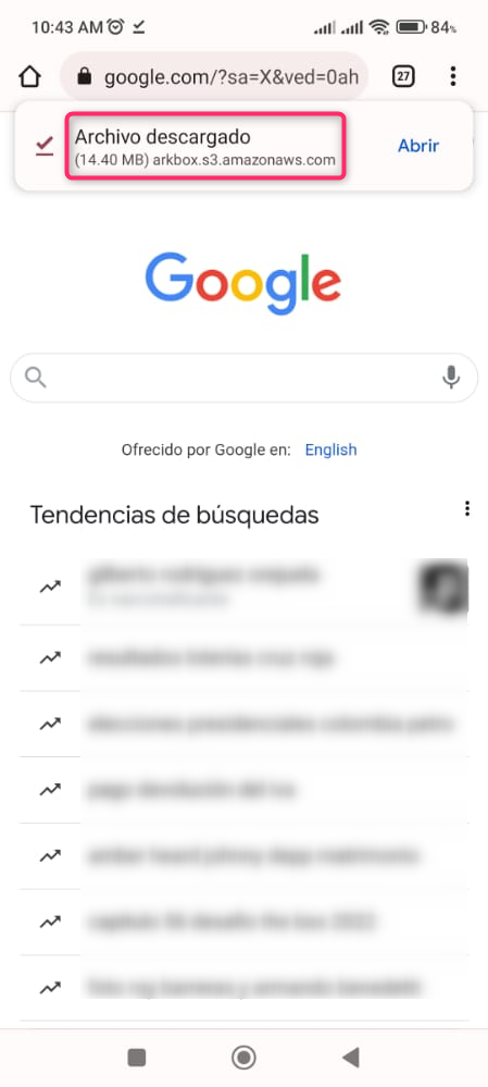El archivo APK se descargará en segundo plano en la parte superior izquierda de la pantalla. Si deslizas la barra de notificaciones hacia abajo, podrás ver el progreso de la descarga.