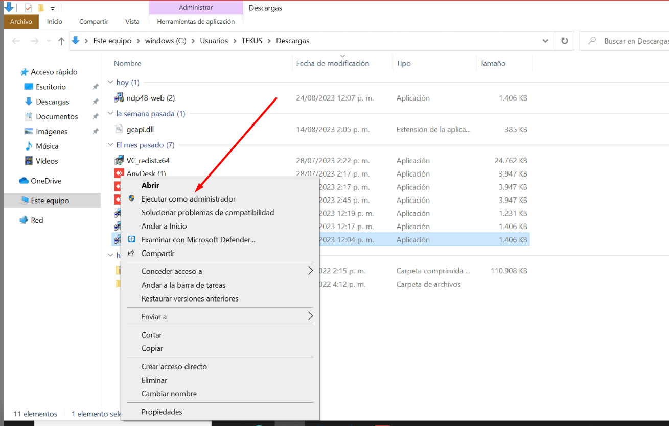 5- Parar el mouse encima de ese ejecutable y darle click derecho y luego ejecutar como administrador