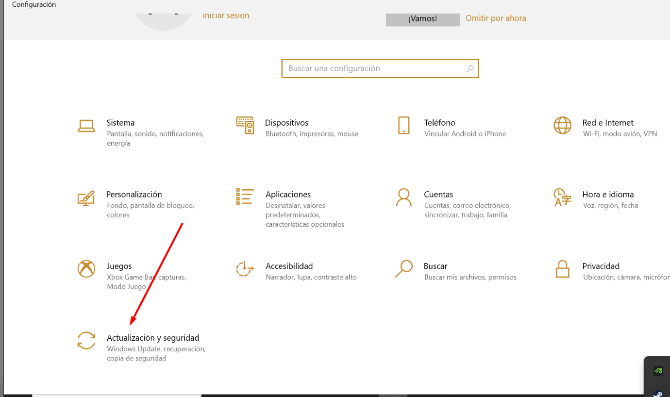 2- Una vez allí irse a Actualización y seguridad: