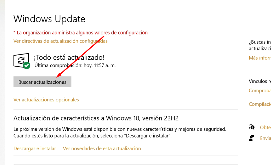 Si por alguna razón no te deja descargar ninguna actualización de Windows por un tema de permisos de organización, sigue los siguientes pasos: