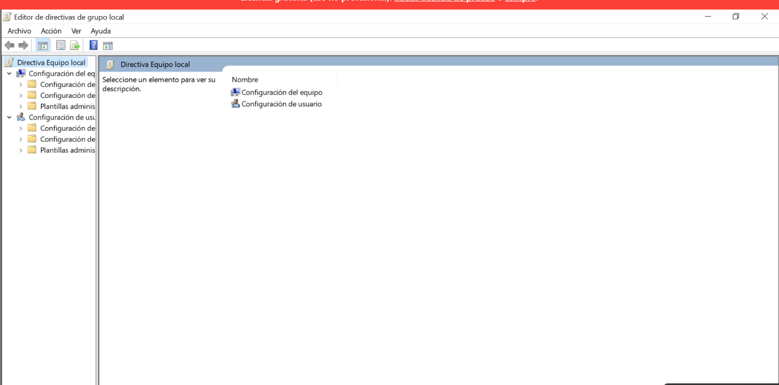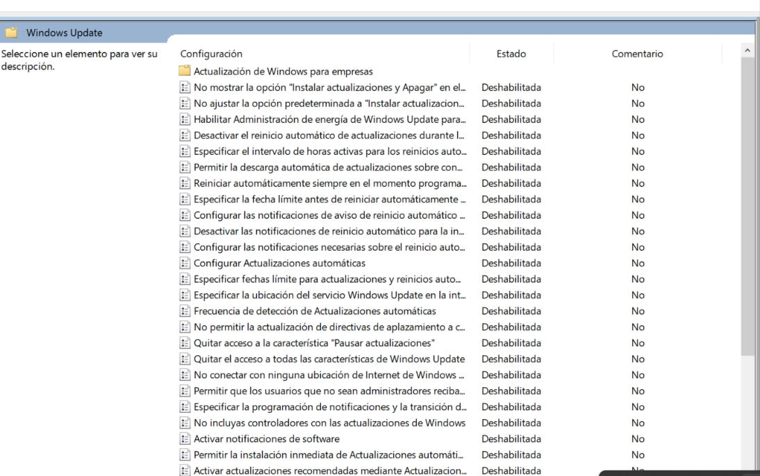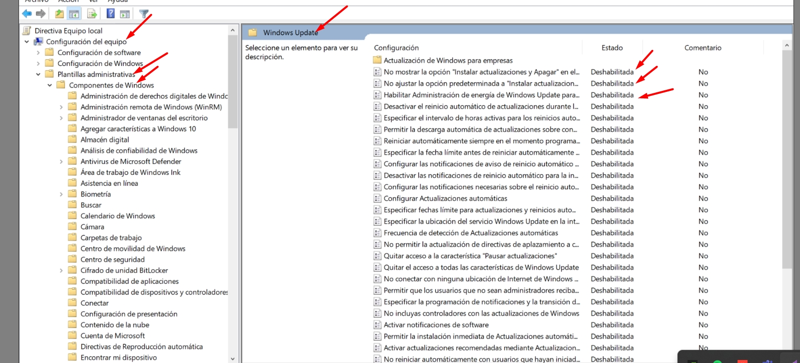 5- Te vas a Configuración del equipo → Plantillas administrativas → Componentes de Windows → Windows Update