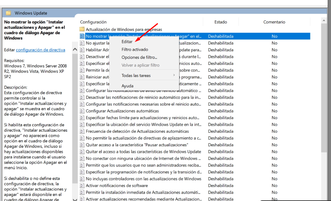6- Una vez ahí, dar clic derecho en cada una de las configuraciones y darle en editar