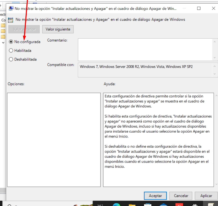 Una vez cuando se de en editar,se abrira la siguiente ventana muy probablemente con la opcion de no configurada