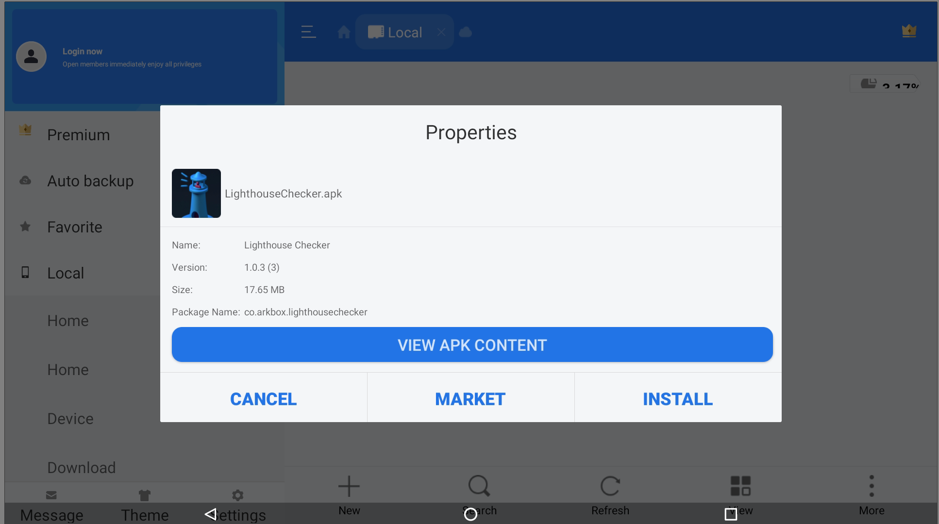 How do you install Lighthouse Checker app in Android player (TV box)?